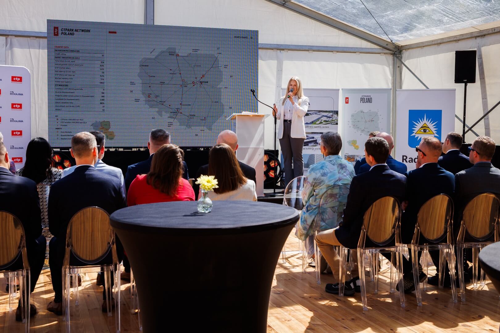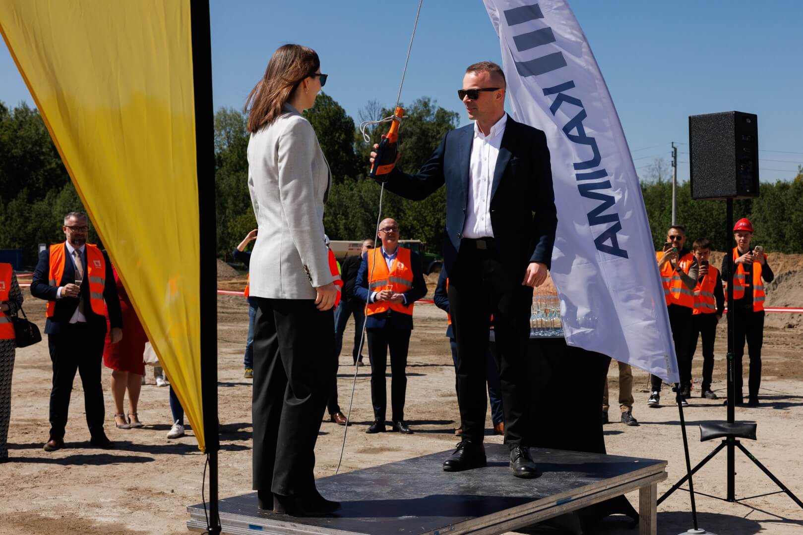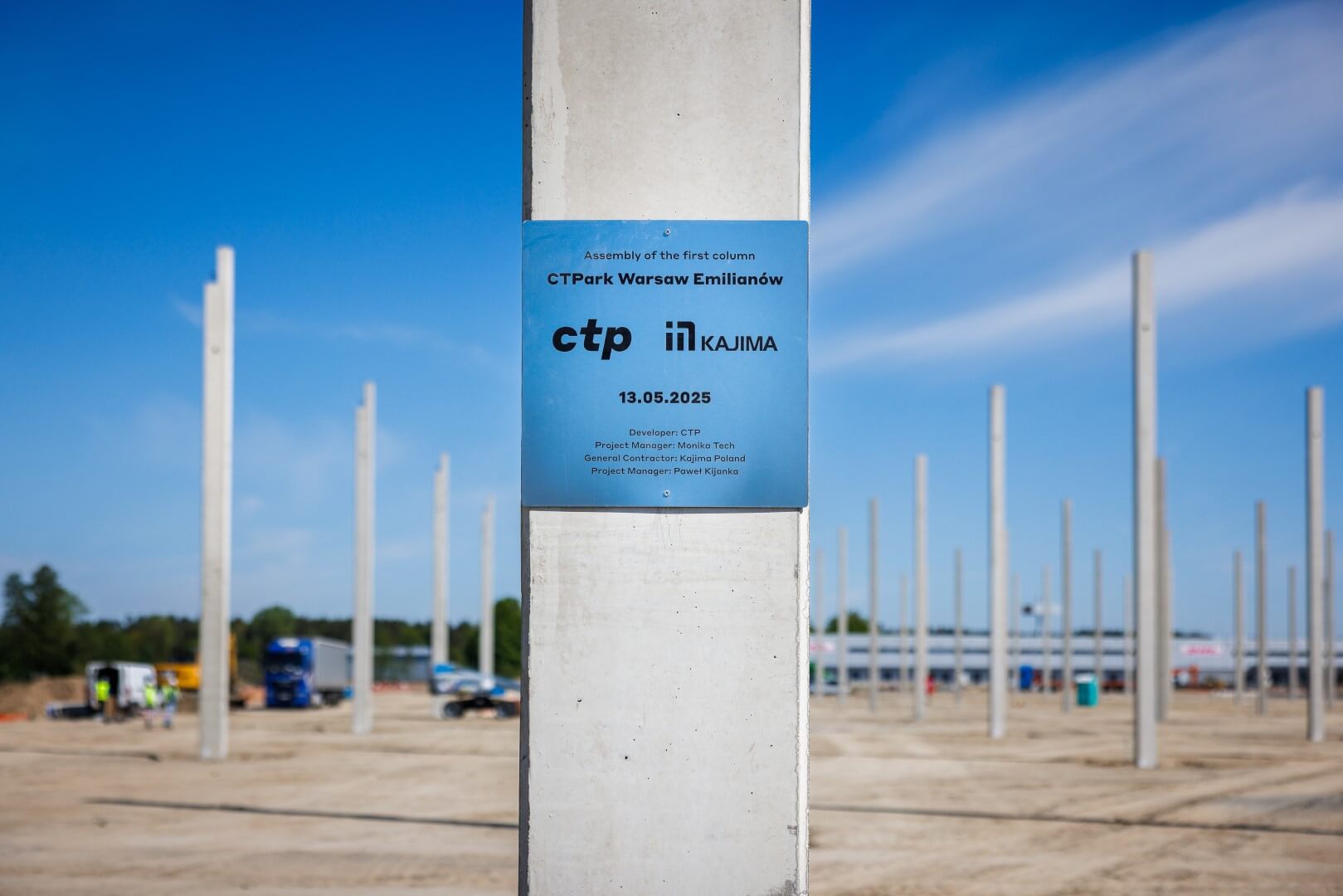 Symboliczny akt erekcyjny podpisali: Piotr Flugel (CTP Poland), Patrycja Makowska (CTP Poland), Matthias Bojda (Aldi Polska), Mariusz Gajda (Aldi Polska), Krzysztof Chaciński – burmistrz Radzymina, zaś w imieniu Kajima Poland: Maciej Runkiewicz oraz Sandra Wróblewska. Pierwszy słup konstrukcyjny symbolicznie ochrzcili szampanem Monika Tech (CTP Poland) oraz Paweł Kijanka (Kajima Poland).