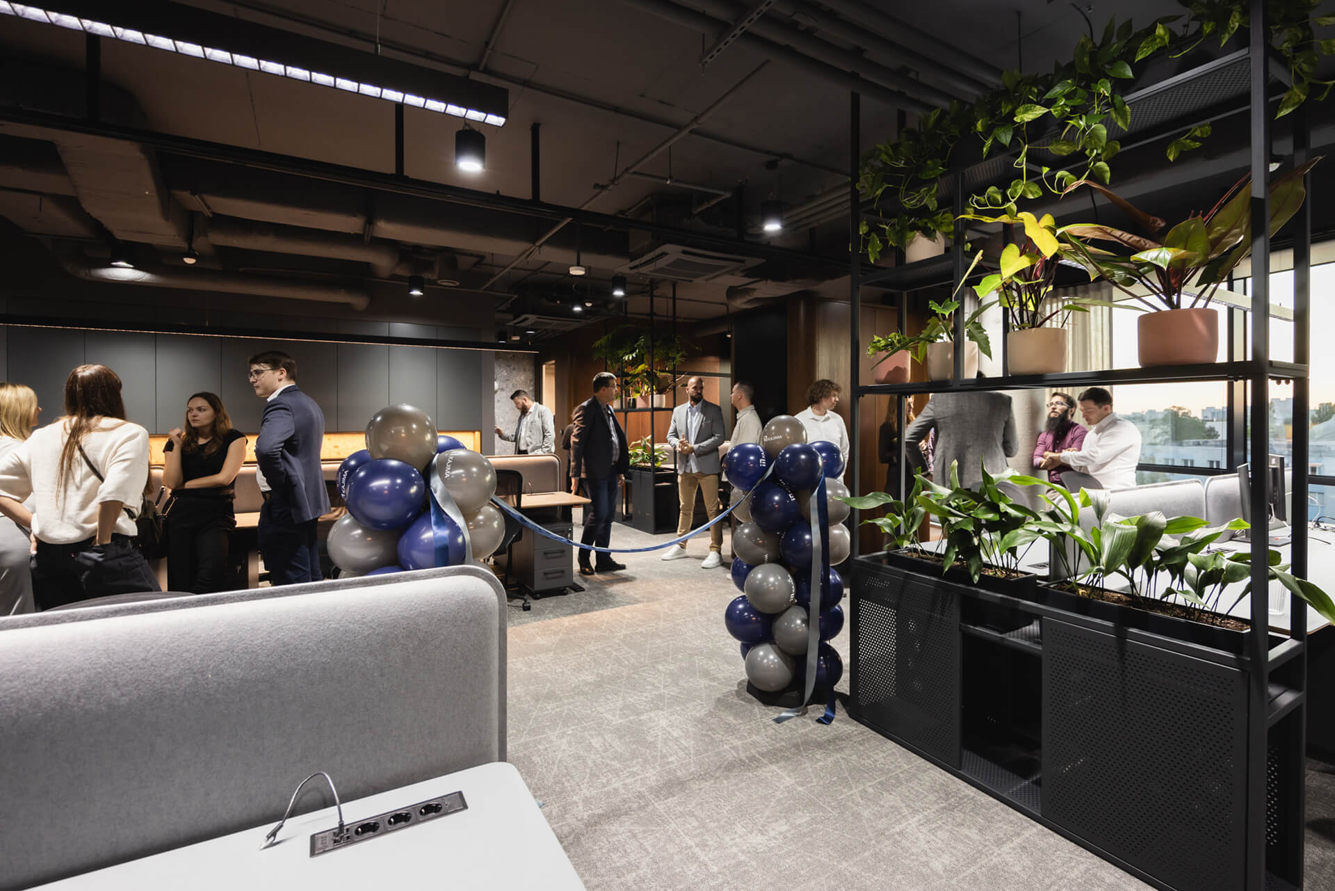 Nowe biuro Kajima Poland stylistycznie nawiązuje do warszawskiej siedziby głównej. Zastosowaliśmy tu szereg rozwiązań, materiały wykończeniowe oraz wyposażenie, które sprawdziło nam się w Warszawie, w tym m.in. ergonomiczne stanowiska pracy dostosowane do możliwości pracy w pozycji stojącej, oświetlenie zmieniające się w trakcie dnia i dopasowujące barwę światła do pory dnia oraz tzw. baffle akustyczne.