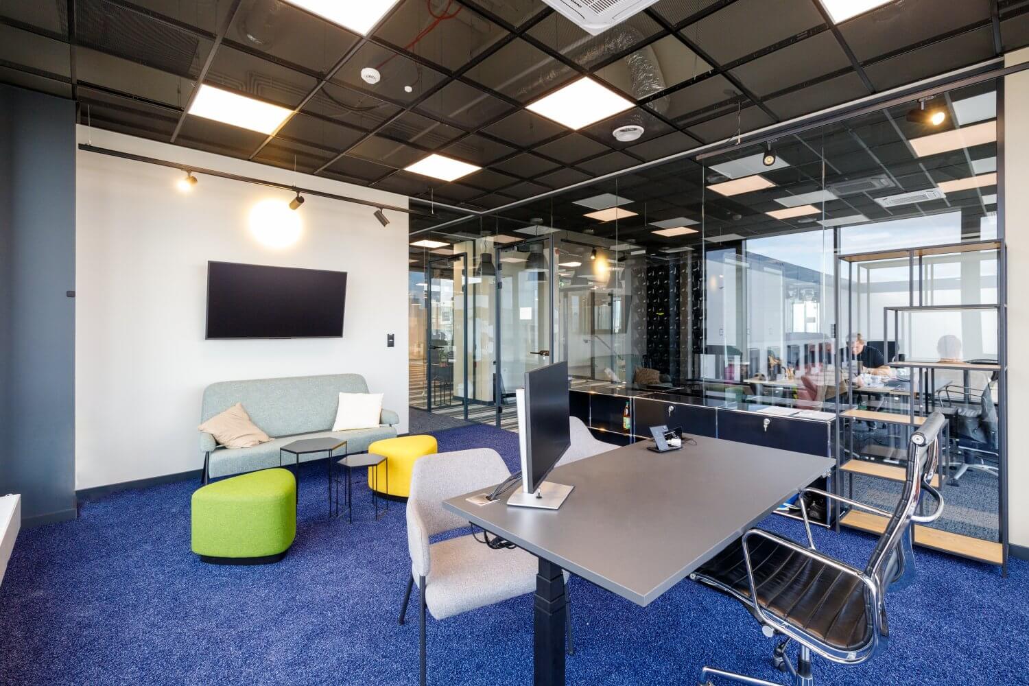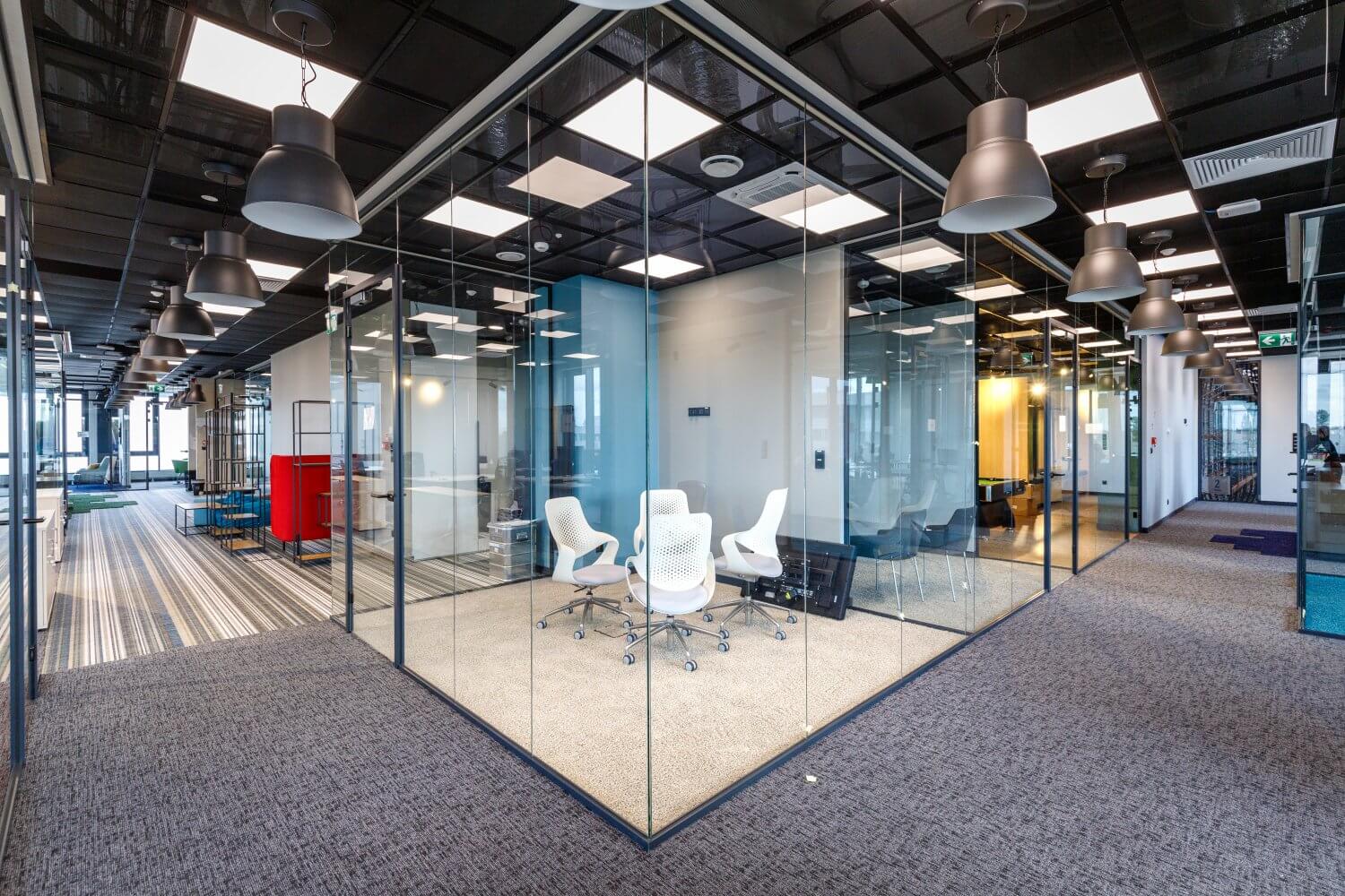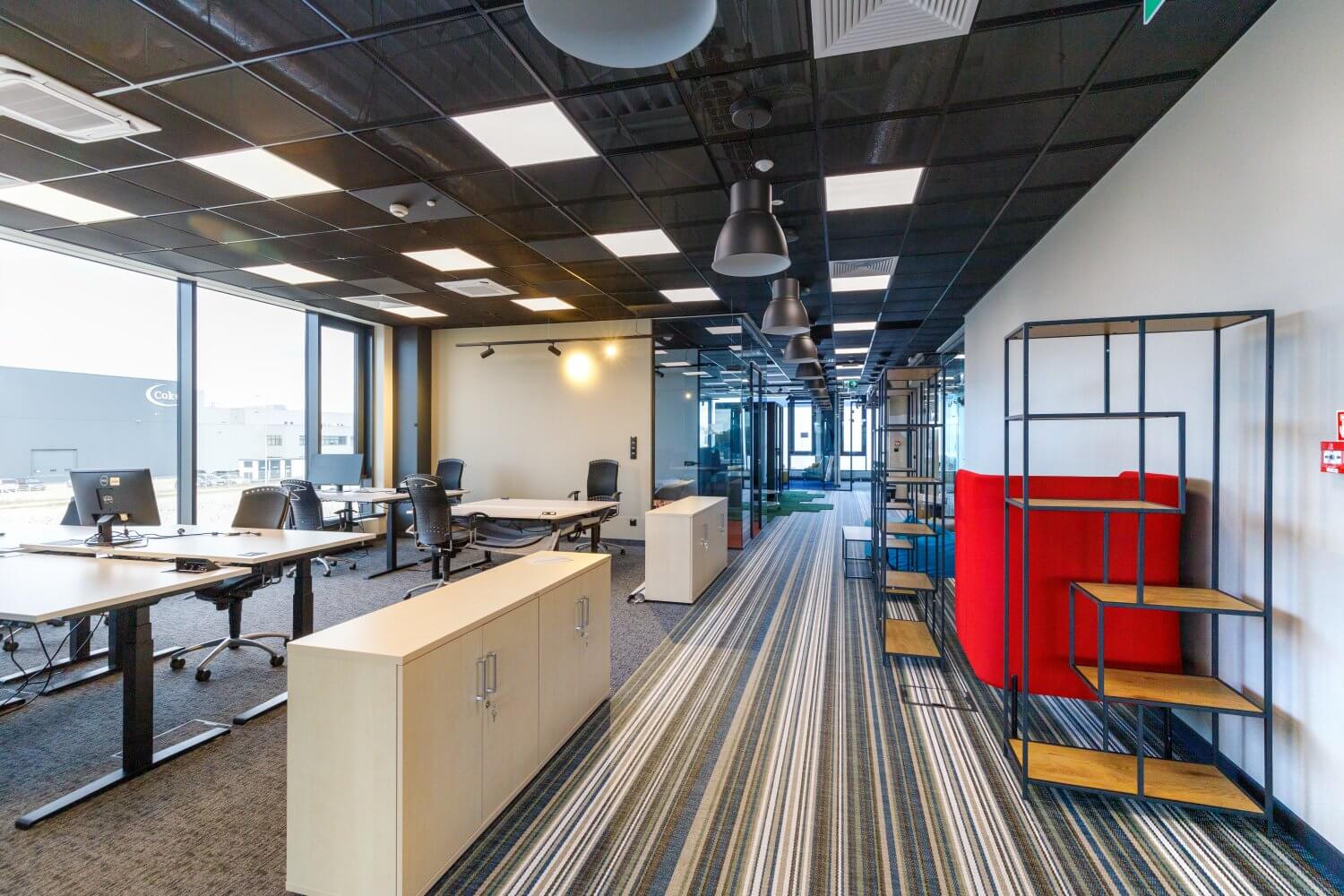 Kolorowe wnętrza części biurowo-socjalnej | Panattoni Park Łódź West II