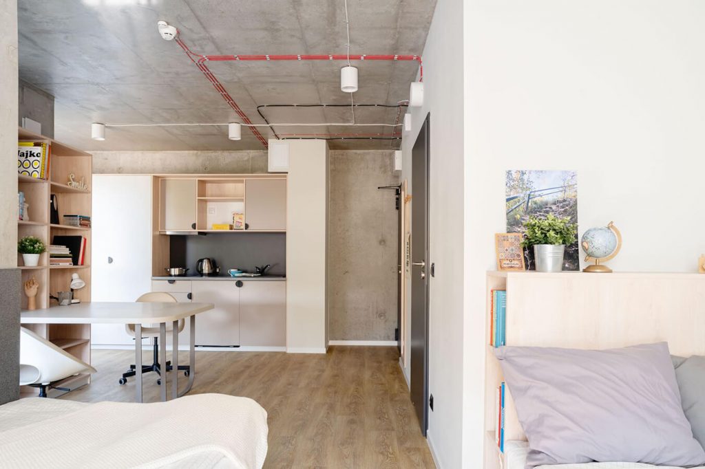 Któż z nas nie chciałby, choćby na chwilę, wrócić do czasów studenckich i spędzić ich w tak atrakcyjnym miejscu, jakim jest nowy akademik dla Student Depot Warszawa Wilanowska zrealizowany przez nas i oddany we wrześniu zeszłego roku. To wygodnie pomyślane, nowoczesne i sprzyjające budowaniu nowych relacji miejsce. Żegnamy się z nim klimatycznymi zdjęciami. Nie bez żalu, ponieważ był to naprawdę duży i niezwykle ciekawy projekt rozwijający nasze kompetencje w zakresie wykonawstwa dla branży mieszkaniowej.